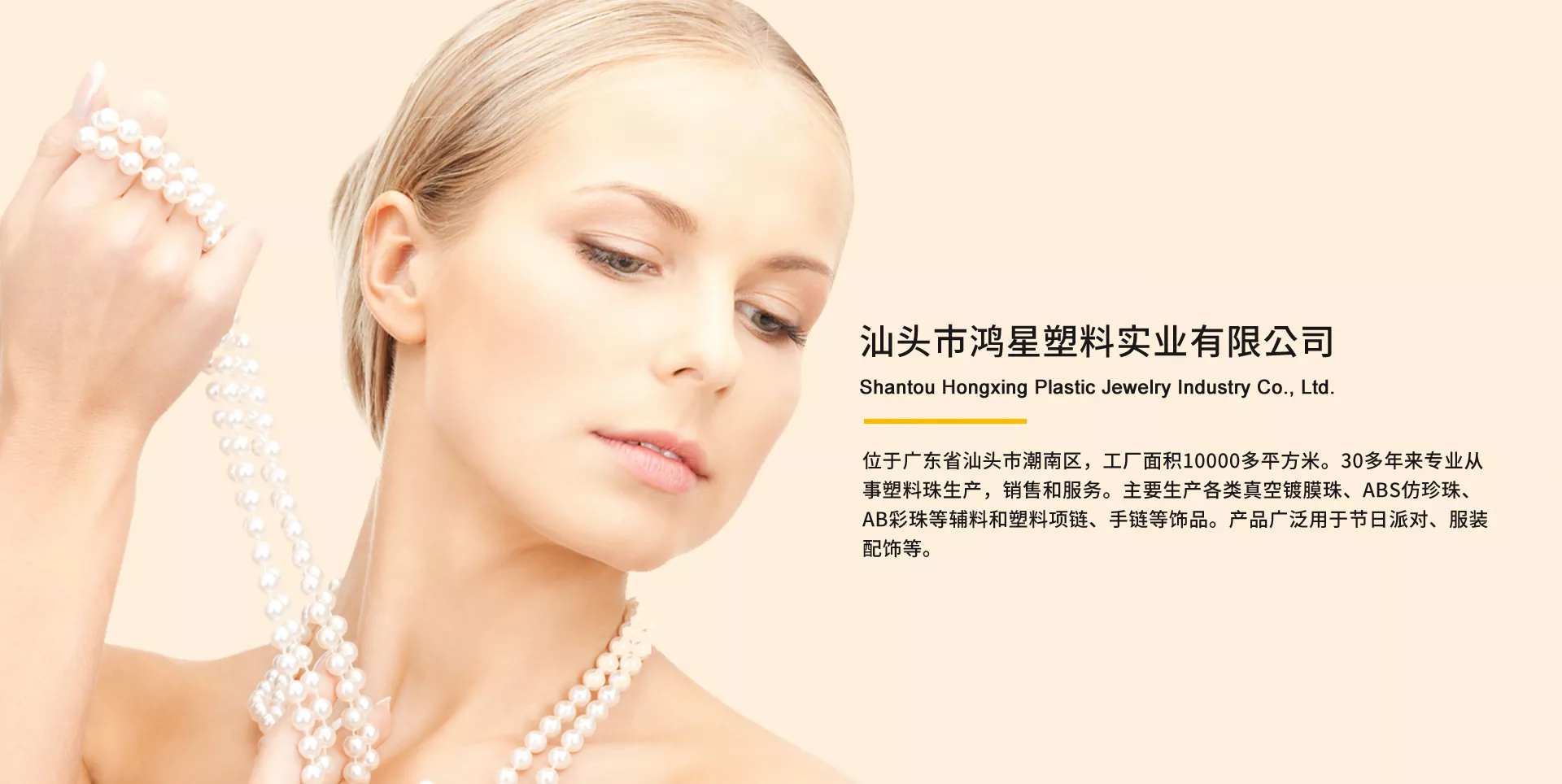 汕头市鸿星塑料饰品实业有限公司位于广东省汕头市潮南区,工厂面积10000多平方米。30多年来专业从事塑料珠生产,销售和服务。主要生产各类真空镀膜珠、ABS仿珍珠、AB彩珠等辅料和塑料项链、手链等饰品。产品广泛用于节日派对、服装配饰等。